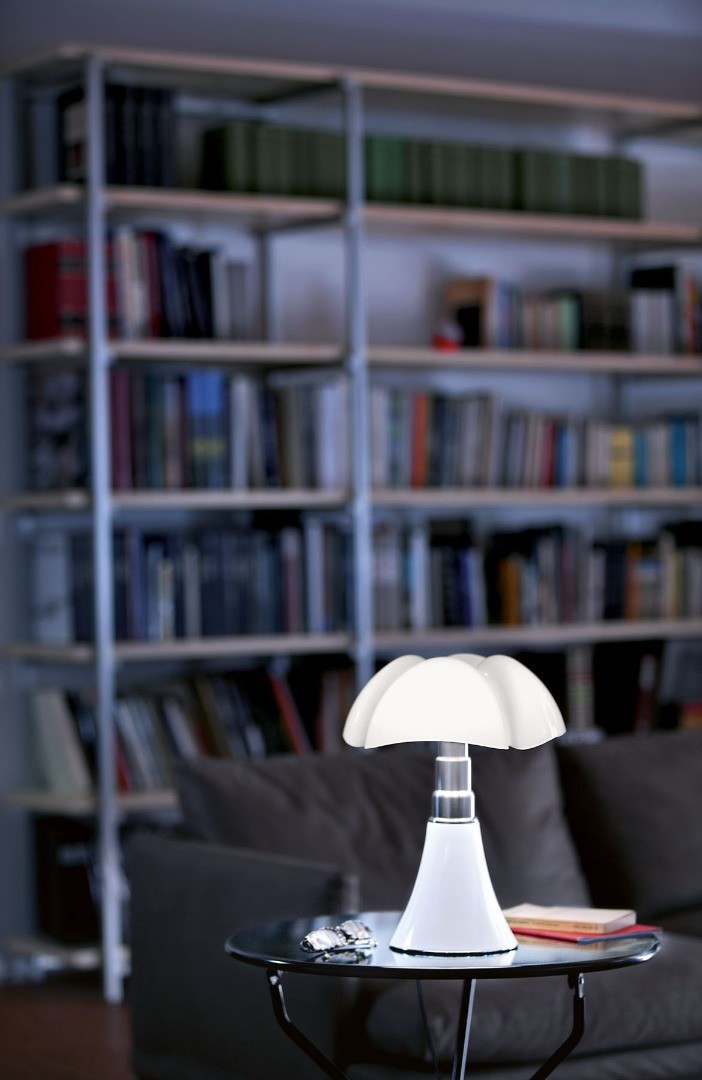 Disegnata nel 1965 da Gae Aulenti per Martinelli Luce, la lampada è realizzata con tecniche di stampaggio del diffusore in metacrilato innovative per l’epoca in cui è stata progettata.