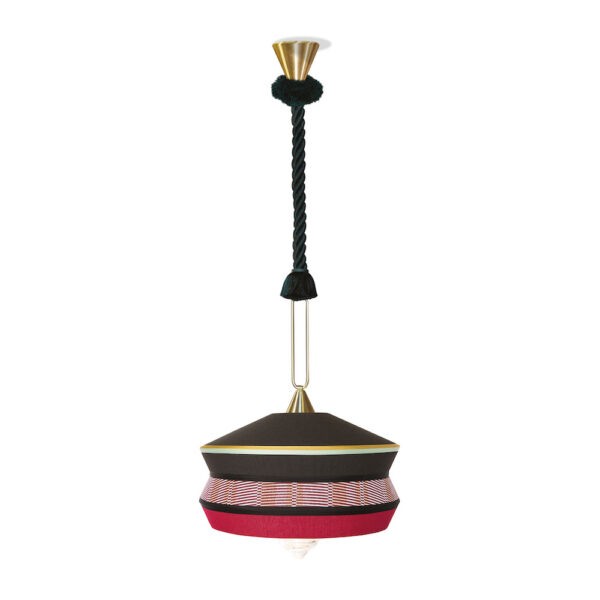 Calypso Antigua firmata da Servomuto per Contardi è una lampada a sospensione con struttura in ottone satinato. Diffusore disponibile in nero, mini, e sale e pepe. Cavo in seta intrecciata color verde muschio. Fonte luminosa: LED 1x E27 14W Versione da interno. Cavo 1.90 mt. Possibilità di ordinare su richiesta cavo 5mt o 10mt. Per info e prezzi +39 366 199 4692