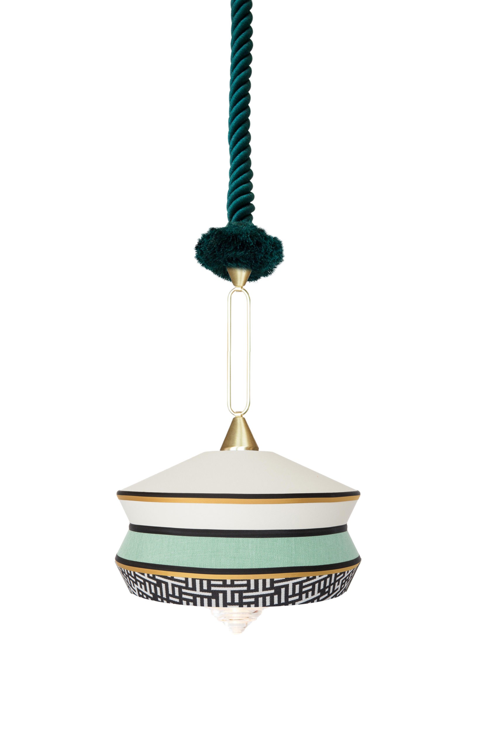 Info e Sconto Riservato +39 366 199 4692 Calypso Guadaloupe firmata da Servomuto per Contardi è una lampada a sospensione con struttura in ottone satinato, cavo in seta intrecciata verde muschio e diffusore disponibile in 3 finiture.