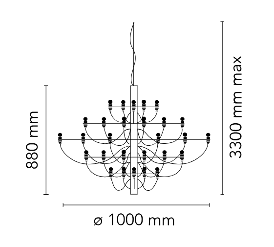 L’aspetto sofisticato è dato dalla presenza di 50 bracci con lampadina E14 (inclusa) a vista per una piacevole luce diffusa adatta a vari ambienti, mentre la robustezza è data dall’utilizzo di materiali come l’acciaio e il ferro.