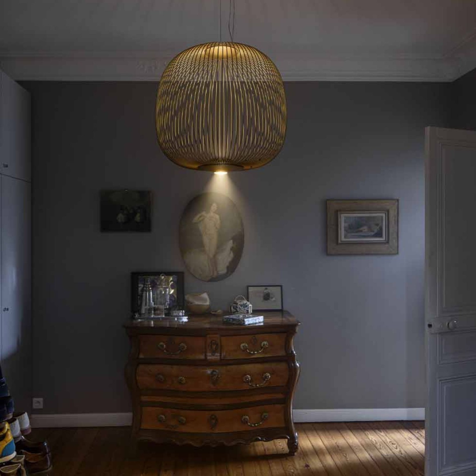Quando si parla di Spokes 2 midi, si parla della lampada più piccola della famiglia, dai volumi leggeri che permettono alla luce di oltrepassarli. Disponibile in bianco, nero, grafite, oro o rame