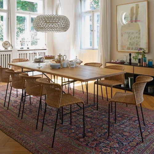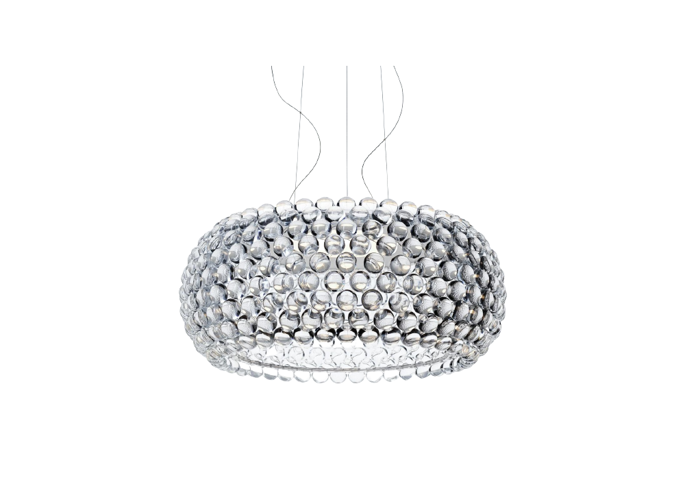Reinterpreta in chiave design il classico lampadario di cristallo, la lampada a sospensione Caboche di Foscarini firmata da Patricia Urquiola e Eliana Gerotto, 2005, trasforma la luce in una brillante struttura di sfere trasparenti.