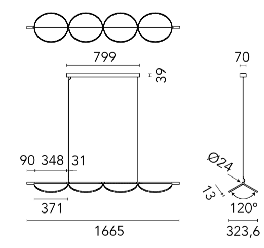 Lampada a sospensione a luce diffusa disponibile in composizioni lineari e organiche. Struttura tubolare in alluminio e terminali in alluminio CNC con finitura opaca o metallizzata. Tecnologia Edge Lighting integrata. Gli apparecchi di illuminazione possono essere ruotati a passi di 60º all'interno della struttura per cambiare la direzione della luce emessa. Rosetta in metallo con finitura bianca opaca.