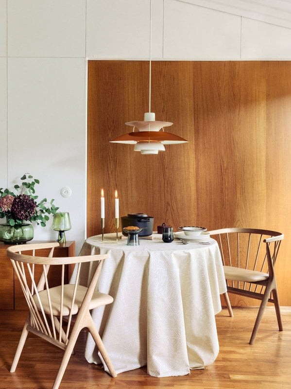 Lampada a sospensione by Poul Henningsen. La lampada PH 5 Metal è caratterizzata da un design elegante ed innovativo: i bei paralumi uniti tra di loro sono anti-bagliore e creano una piacevole illuminazione perfetta per il tavolo da pranzo o altri spazi più alti.