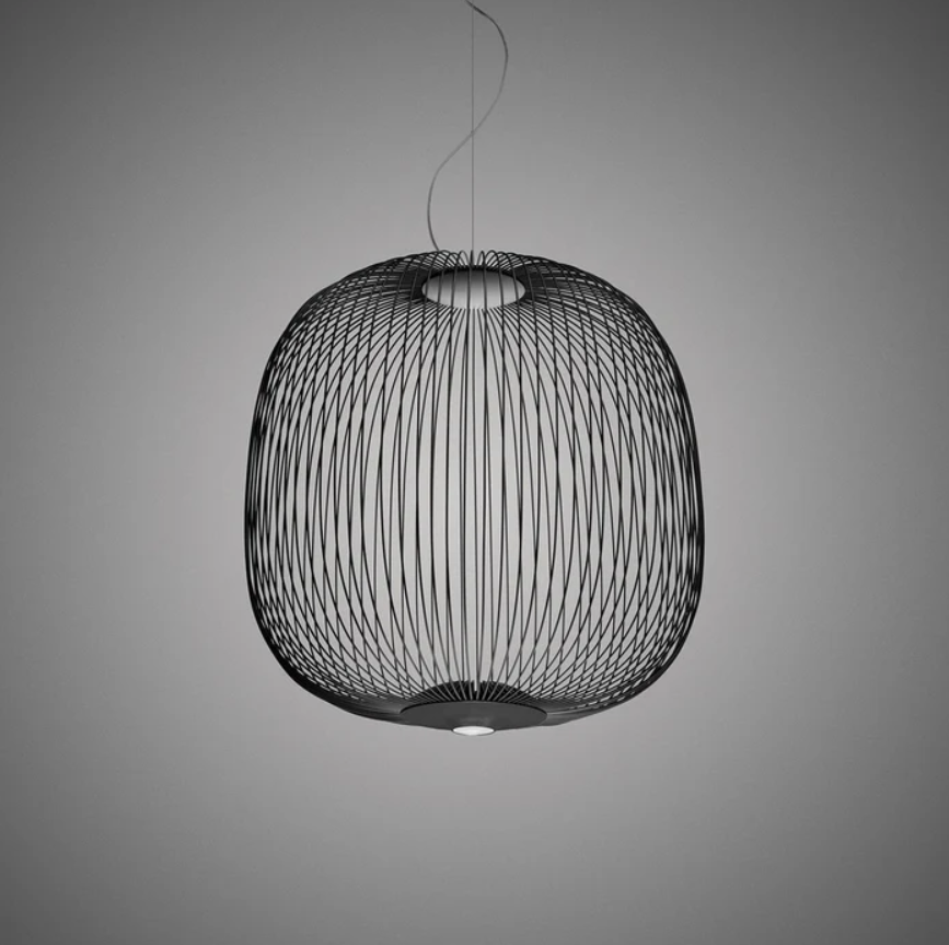 La luce proietta giochi quasi magici sulle pareti e i soffitti, filtrando attraverso il reticolo metallico di Spokes 2. La sospensione a forma di lanterna è disponibile in: bianco, nero, grafite, oro o rame.