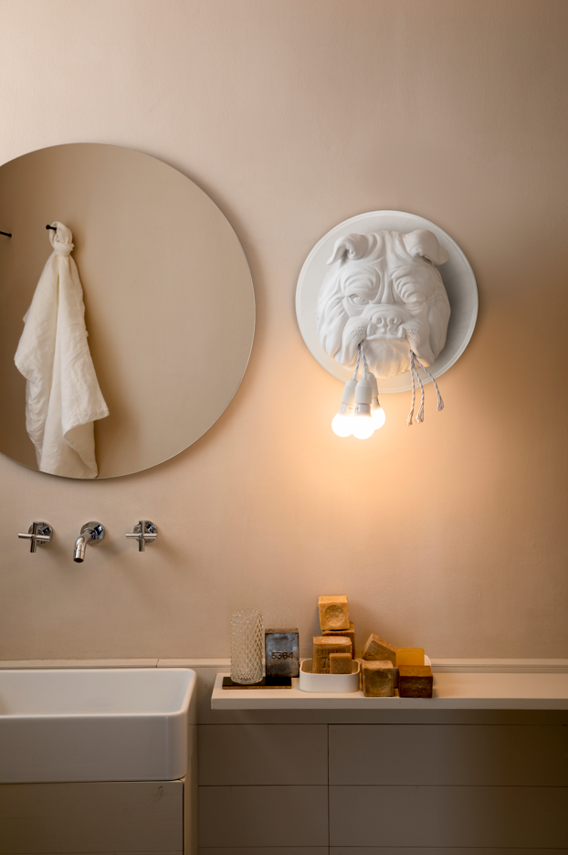 Progettata da Matteo Ugolini, Amsterdam è l'iconica lampada da parete a forma di bulldog by Karman.