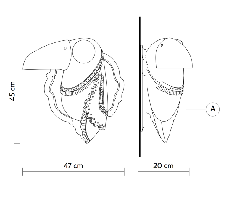 Con il suo enorme e caratteristico becco, Cubano rispecchia alla perfezione la filosofia Karman: stupire, emozionare e non lasciare indifferenti. Fonte luminosa; 1 x MAX 52W
