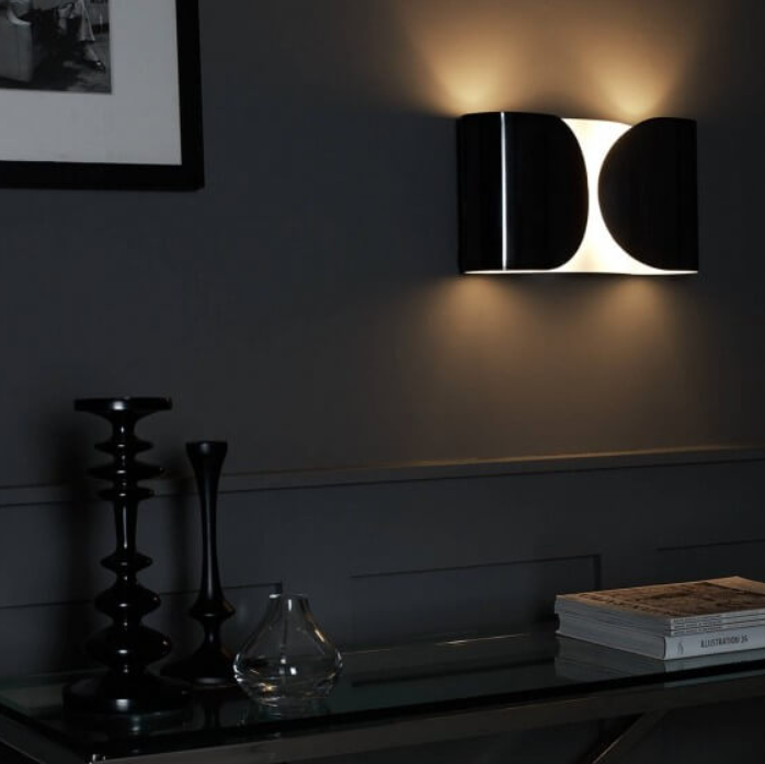 Lampada da parete firmata Tobia Scarpa, 1966, divenuta iconica per la sua forma essenziale ma elegante.