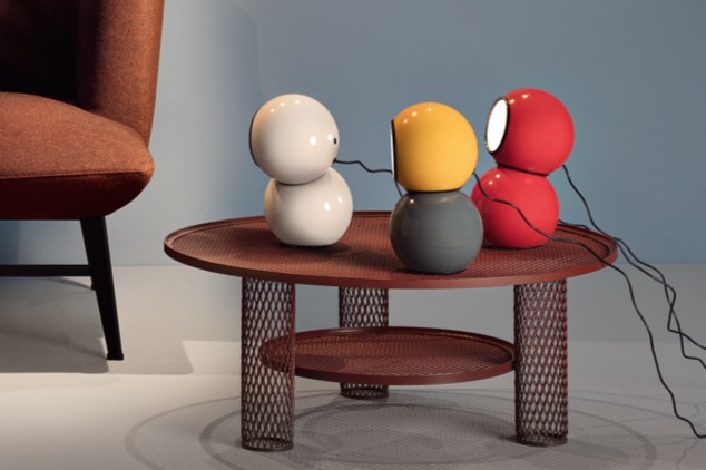 In Gravitino 541, lampada da tavolo progettata da Antonio Macchi Cassia nel 1969, un magnete collega la sfera-testa, che ospita la sorgente LED, alla sfera-corpo, la base.