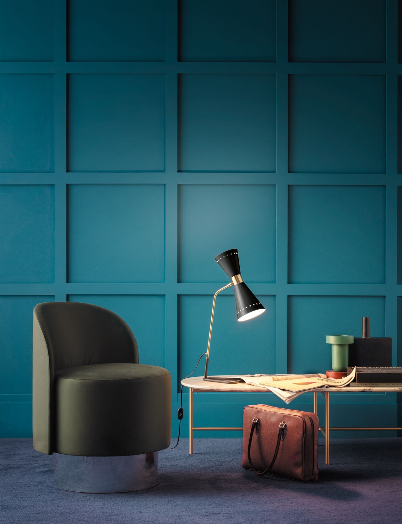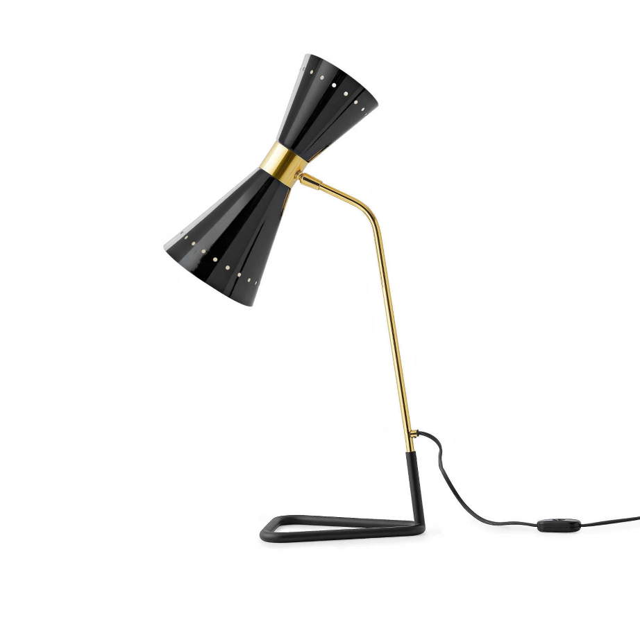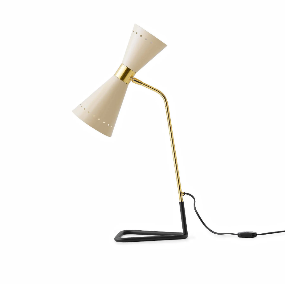 Info e Trattativa Riservata +39 366 1994692 Megafono è una lampada icona degli anni Cinquanta a luce diretta e indiretta. Il paralume orientabile a doppio cono, in finitura avorio o nero lucido, si abbina al prezioso stelo in ottone con doratura galvanica, per illuminare con un tocco raffinato.