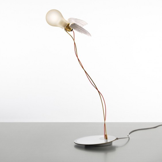 Lucellino Table è la versione da tavolo della lampadina alata che Ingo Maurer disegnò nel 1992 e che oggi è considerata un'icona del design.
