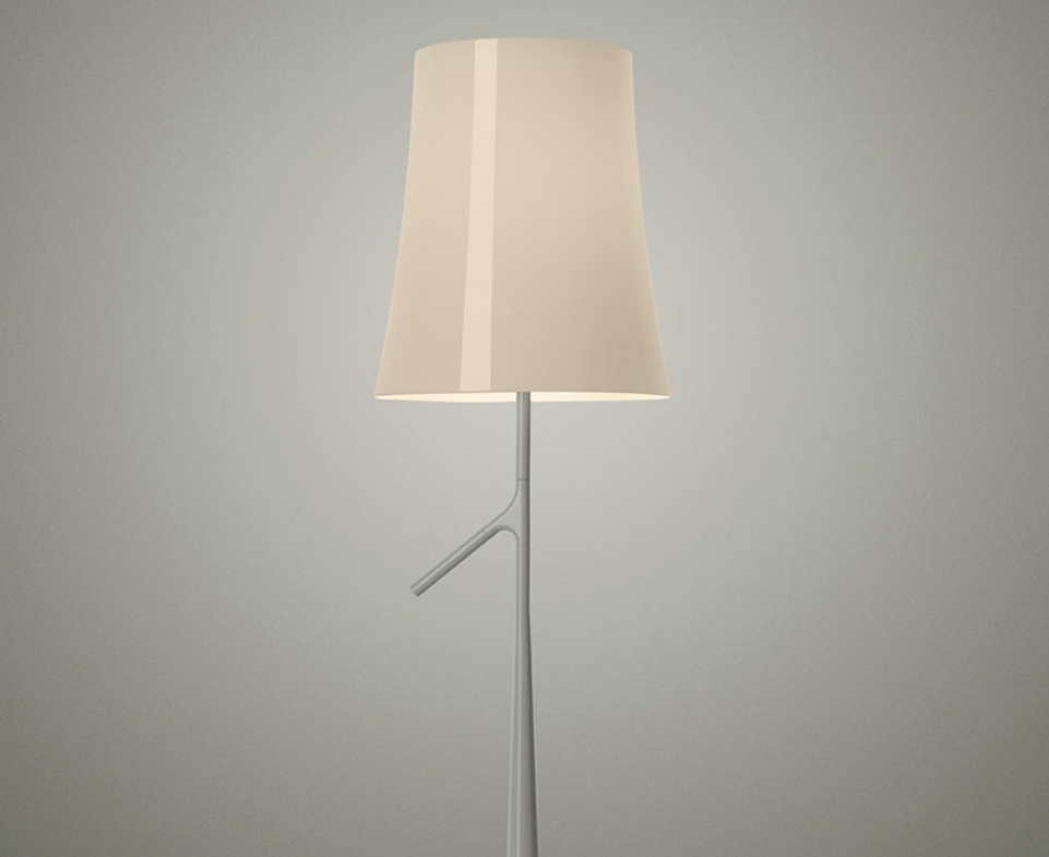 Lampada da tavolo firmata da Ludovica e Roberto Palomba, 2011: è Birdie. Vuole reinterpretare le classiche lampade a paralume in una maniera contemporanea, con il proprio design dolce e familiare.