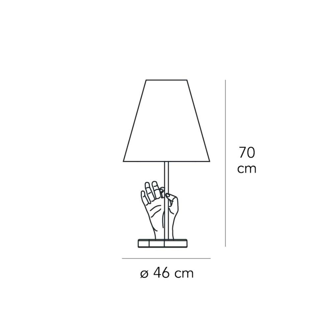 Una lampada ironica ed elegante progettata da Pietro Chiesa nel 1932, anno nel quale inizia il suo progetto di direzione artistica in FontanaArte, condivisa con Gio Ponti. Anticipatrice di ironia e di originalità per quei tempi, ancora oggi Mano è fra i pezzi più ricercati dagli appassionati di design di tutto il mondo