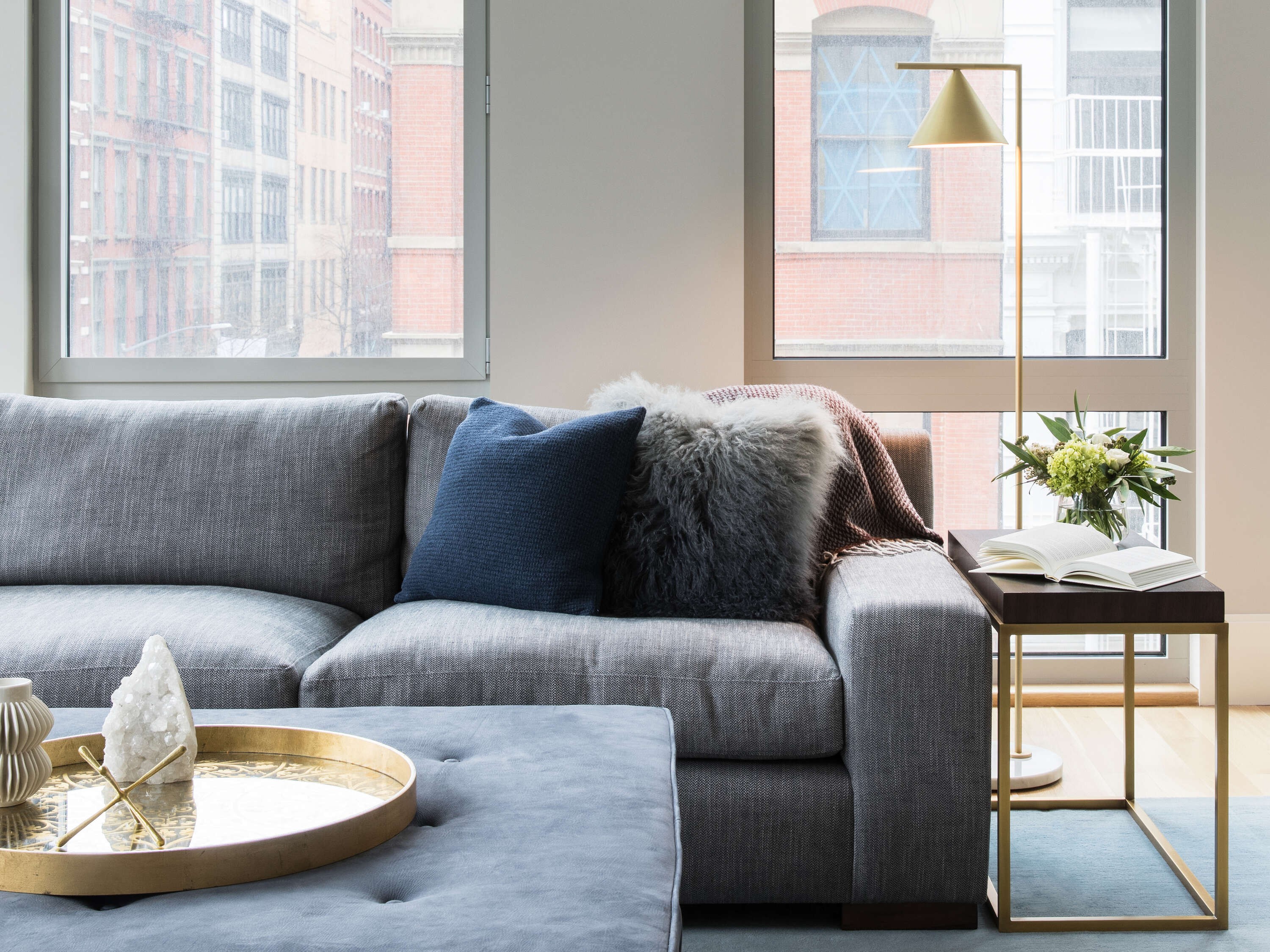 Disponibile in antracite (con base in marmo nero) e ottone spazzolato (con base in marmo bianco).