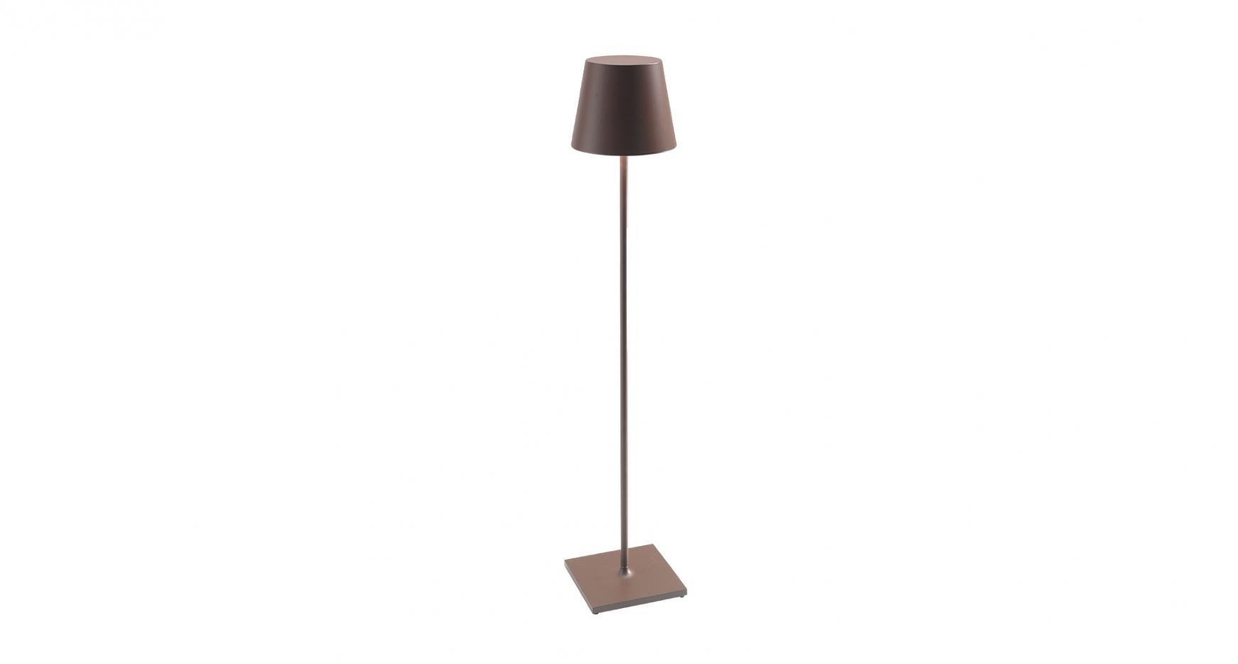 Lampada da terra ricaricabile con illuminazione a LED adatta sia per ambienti esterni che interni, base di ricarica a contatto inclusa e durata batteria fino a 15 ore. Disponibile in Bianco, Grigio Scuro, Corten. Caricabatterie incluso nei modelli LD0360 e non incluso nei modelli LD1360.