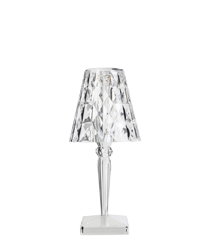 Big Battery è la versione maxi dell’abat-jour, dimmerabile e ricaricabile al 100% tramite una semplice spina elettrica e con un’autonomia di 7 ore. Disponibile in Cristallo, Prugna, Azzurro e Cola.