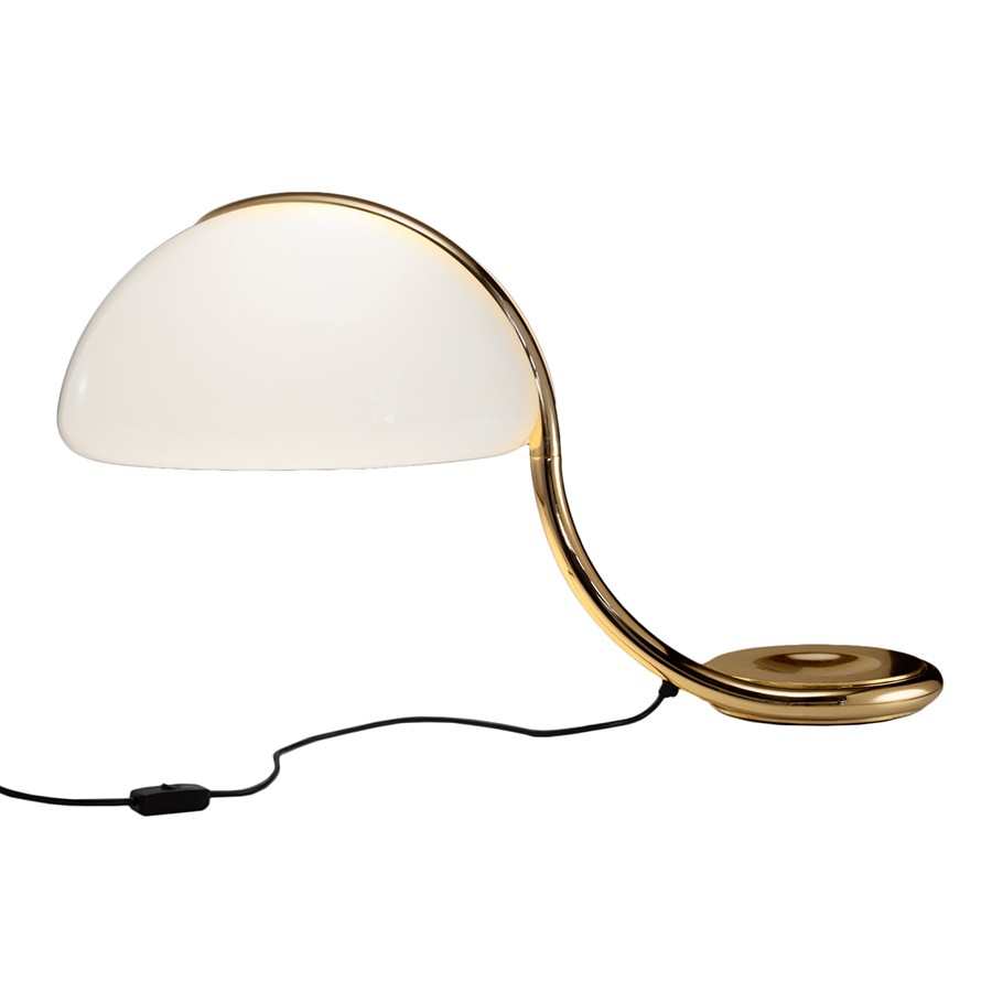 Simbolo di essenzialità formale, duttilità e dinamicità Serpente ancora oggi, dopo 50 anni, è una delle lampade icona del catalogo Martinelli. Un design senza tempo e l’utilizzo di soluzione tecniche, come il sistema di rotazione del sostegno, l’hanno resa la capostipite di numerosi prodotti successivamente inseriti a catalogo. Fonte luminosa: 1 x 12W E27 LED