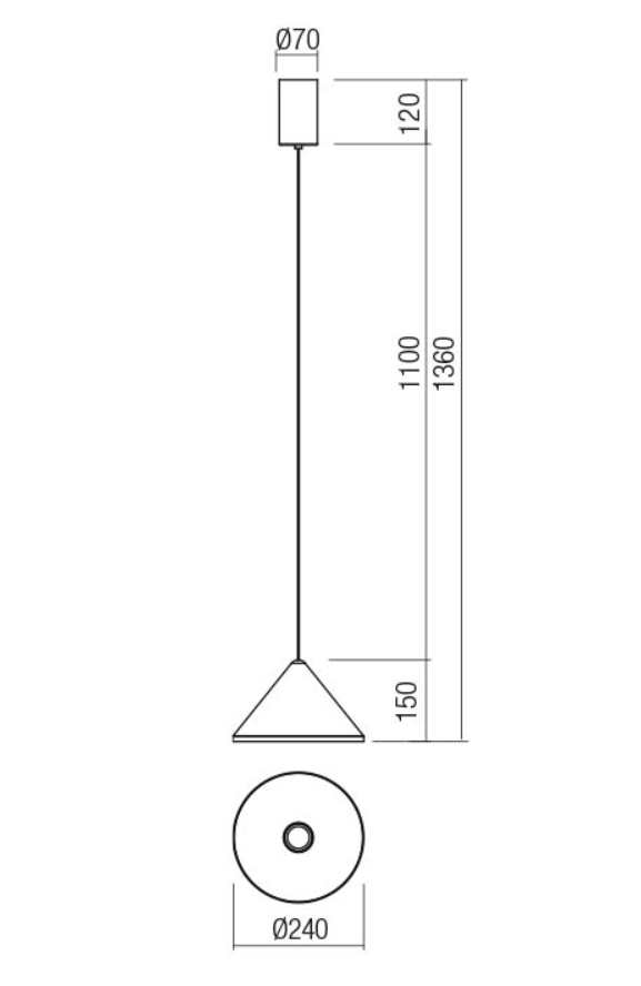 Sospensione per interni equipaggiata con LED SMD, struttura e diffusore in alluminio verniciati nero opaco.