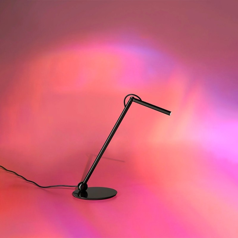 Calamaio è una lampada da tavolo che illumina in modo puntiforme: questo grazie alla rotazione della testa montata su una struttura anch’essa mobile.