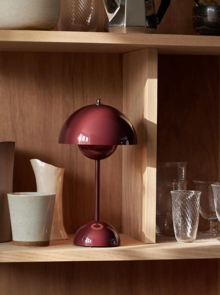 Il design iconico della lampada Flowerpot è riflesso anche nella versione da tavolo cordless: le proporzioni ridotte della lampada VP9 hanno l'ulteriore vantaggio di essere mobile.
