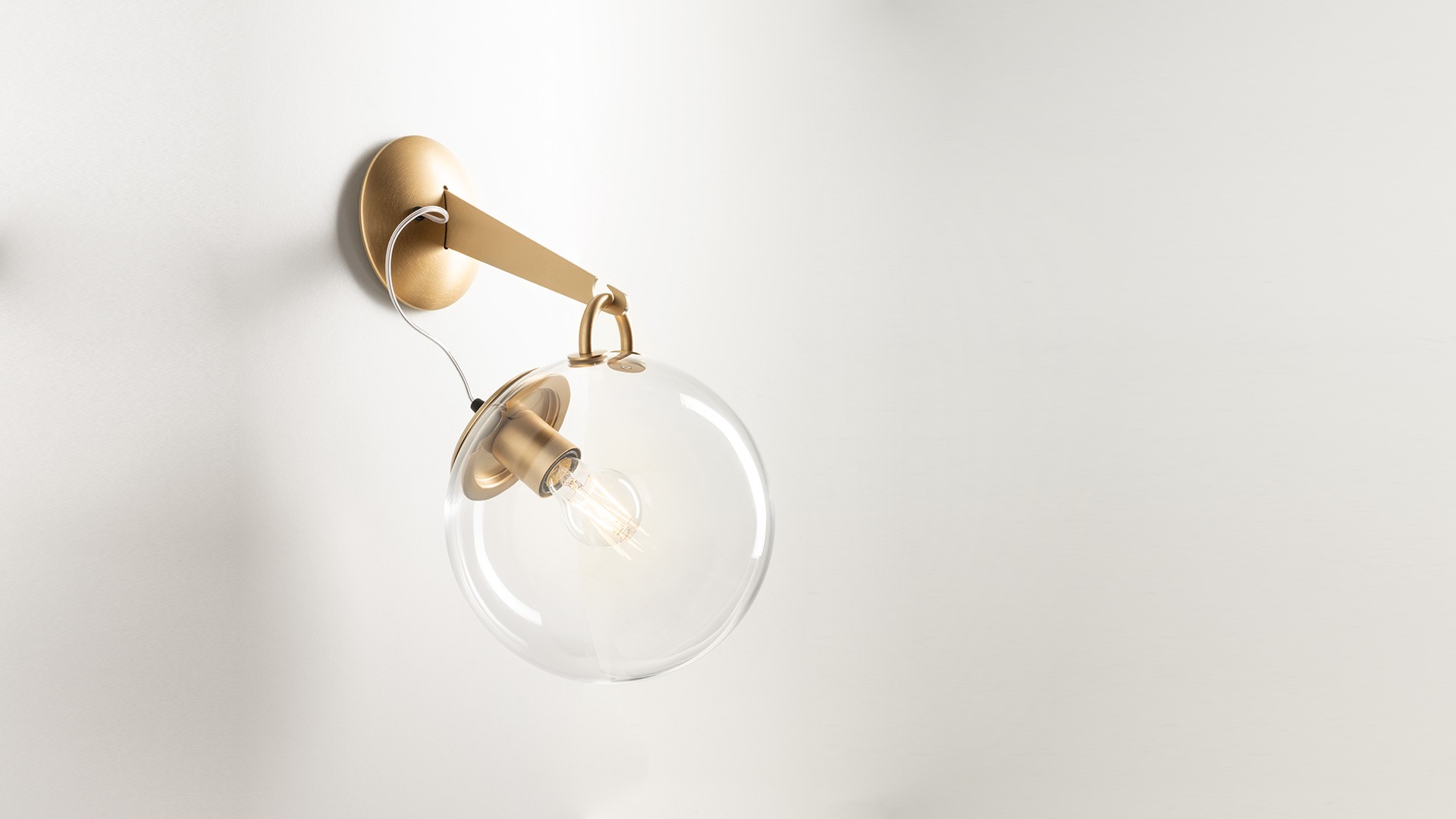 La Miconos da parete, disegnata da Ernesto Gismondi, è una lampada composta da diversi elementi: la struttura funzionale ed equilibrata regge la calotta trasparente in vetro soffiato. La lampadina è messa in risalto dalla cornice che è la struttura; diventa un’icona nella sua semplice eleganza.