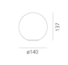 Il progettista, Michele De Lucchi, decide di mantenere una geometria elementare. Il diffusore è una semplice sfera di vetro soffiato, che nel tempo è diventata un prodotto iconico; il materiale aiuta la diffusione uniforme della luce. Disponibile in diversi diametri: 14cm, 25cm, 35cm, 42cm