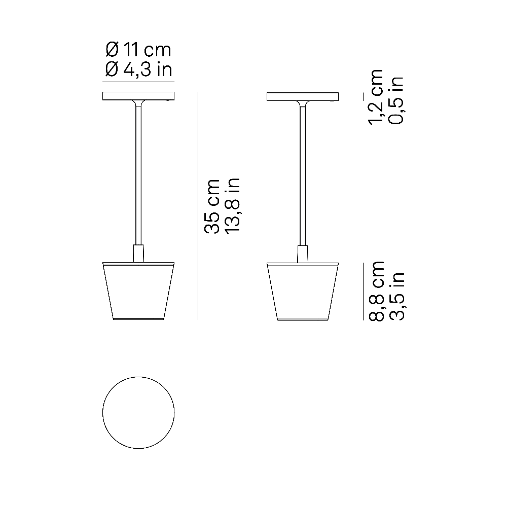 Poldina Reverso è una lampada a batteria portatile e ricaricabile da tavolo, con vaschetta contenitore multiuso. La durata della batteria è di 12 ore (con luce alla massima intensità); il tempo di ricarica a 1A, sull’apposita base a contatto, è di 6/7 ore. Un indicatore (LED rosso lampeggiante) si attiva quando la batteria è in esaurimento (sotto il 20% di carica). Poldina Reverso è utilizzabile anche all’esterno perché protetta anche da pioggia e umidità (IP54). La base di ricarica (IP20) è adatta solo a uso interno. Materiali: pressofusione di alluminio verniciato, lo schermo diffusore è in policarbonato satinato, la vaschetta contenitore multiuso (capacità 18cl) in resina termoplastica adatta al contatto alimentare (PET) è removibile e riutilizzabile. Colori disponibili: bianco, corten, grigio scuro, verde salvia, sabbia Fonte luminosa: LED, touch dimmer e funzione di selezione della temperatura di colore della luce tra 2200K, 2700K e 3000K