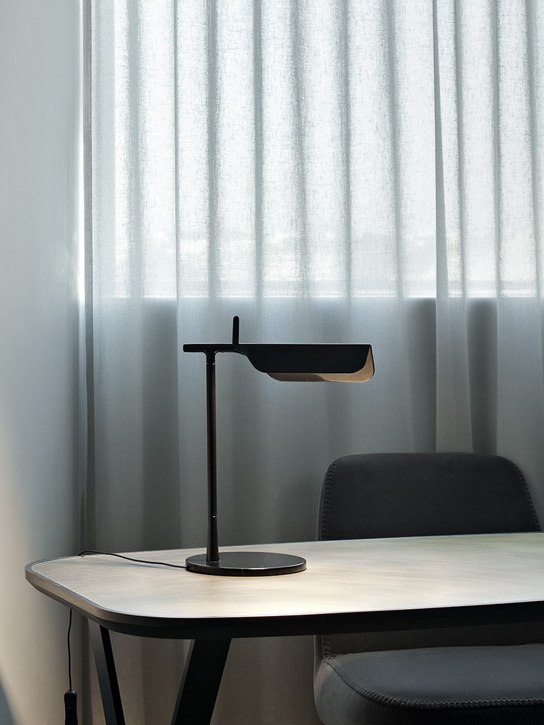 Designed by Edward Barber and Jay Osgerby, 2011. Lampada da tavolo. Corpo in alluminio pressofuso verniciato. Scheda multi-led con diffusore in PMMA studiato appositamente per evitare l'effetto Multi Shadow e l'abbagliamento. Rotazione della testa di ±90°. Presente in diverse colorazioni: nero, bianco, blu opaco e verde scuro
