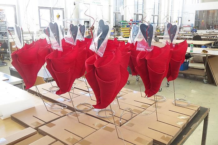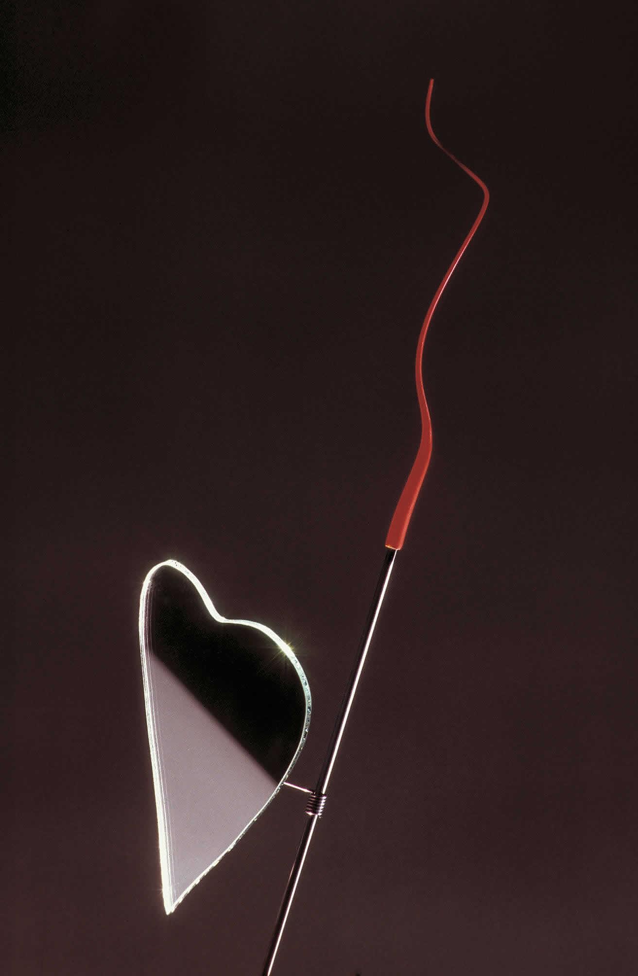 Carta rossa, metallo, acciaio inox, vetro, plastica. Specchio regolabile. Kokoro fa parte della collezione "The MaMo Nouchies", sviluppata da Dagmar Mombach insieme a Ingo Maurer e al suo team. Come tutte le MaMo Nouchies, il paralume è realizzato in carta giapponese, modellata nella manifattura di Dagmar Mombach attraverso diversi passaggi artigianali complessi. Dotata di un modulo LED dimmerabile. Lo specchio regolabile riflette un cuore di luce sul tavolo o sulla parete.