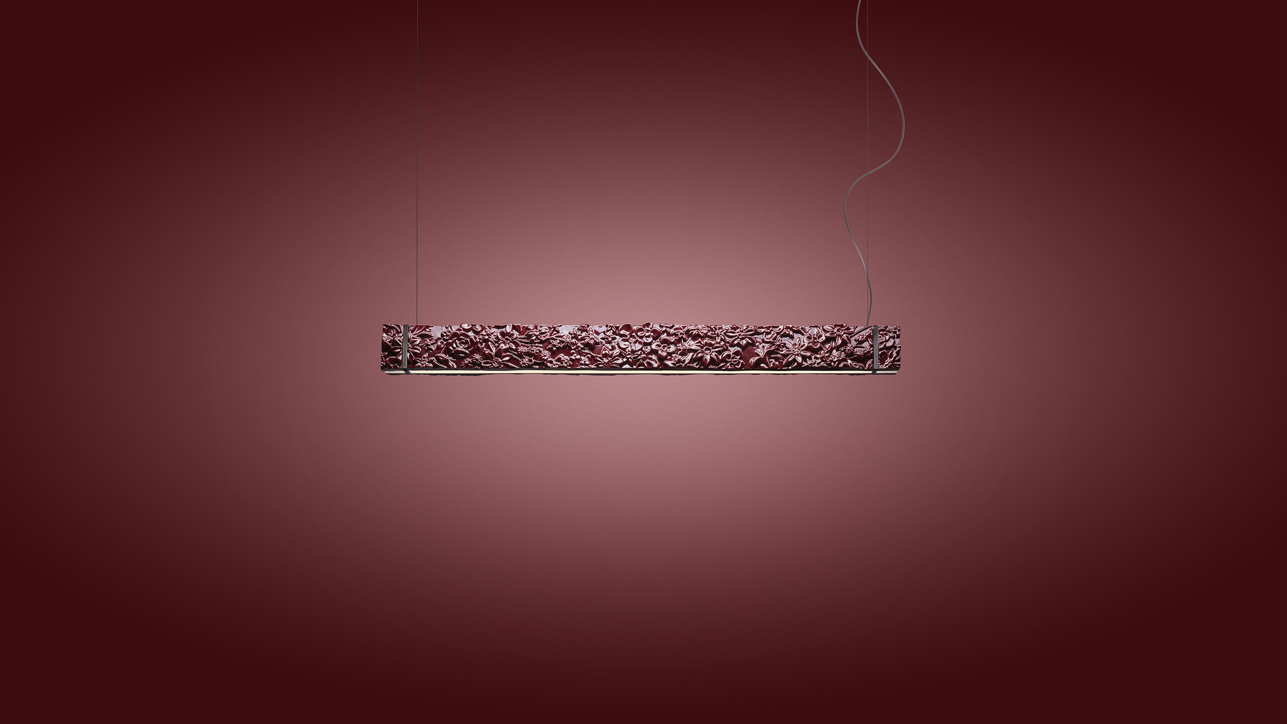 Fregio è una scultura luminosa costruita su una sintesi di opposti: tra luci e ombre, pieni e vuoti, tra il sapore ancestrale della ceramica smaltata decorata artigianalmente e quello tecnologico e industriale delle fonti luminose LED e delle fascette metalliche di supporto. Emette molta luce sia verso il basso sia verso l’alto ed è una lampada a sospensione perfetta per illuminare un tavolo.