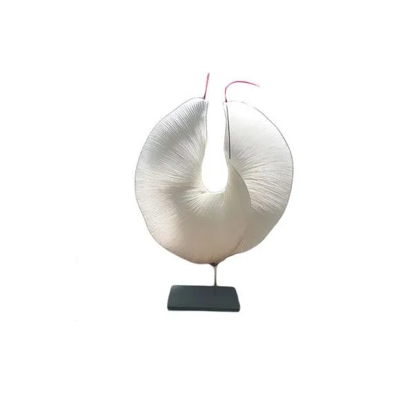 Yoruba Rose colpisce per grazia e perfezione della forma. Il foglio di carta è quasi circolare e sospeso su sottili aste di metallo. La luce è calda e morbida, difficilmente distinguibile dalla consueta luce alogena.