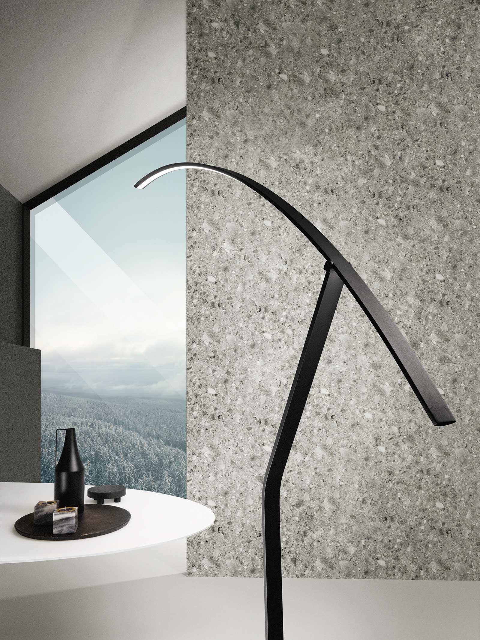 Piantana LED in metallo verniciato, dimmerabile. Disponibile in diversi colori: oro, nero e bianco
