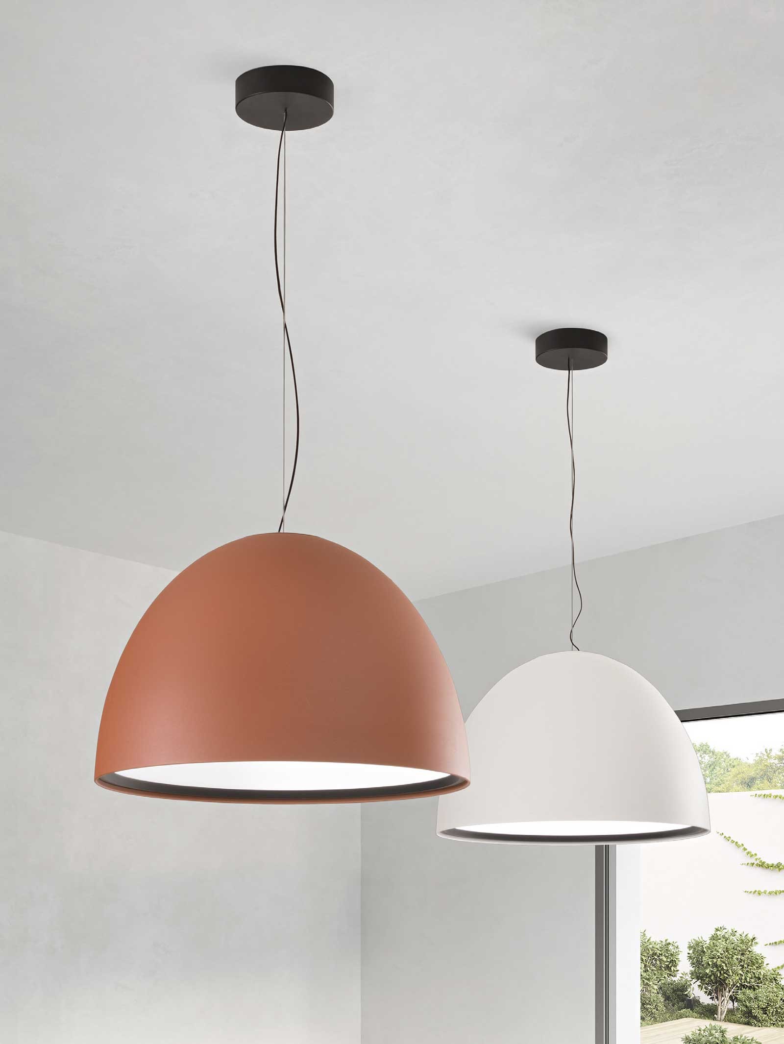 Sospensione a LED in alluminio verniciato. Diffusore in policarbonato. Cavetti regolabili in lunghezza. Non dimmerabile.